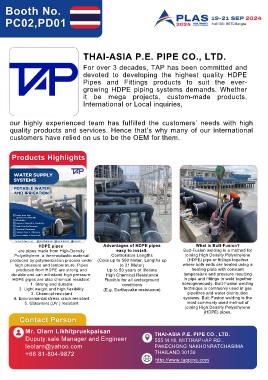 HDPE pipes are also chemical resistant. Flexible for all underground in pipe and fittings to weld together